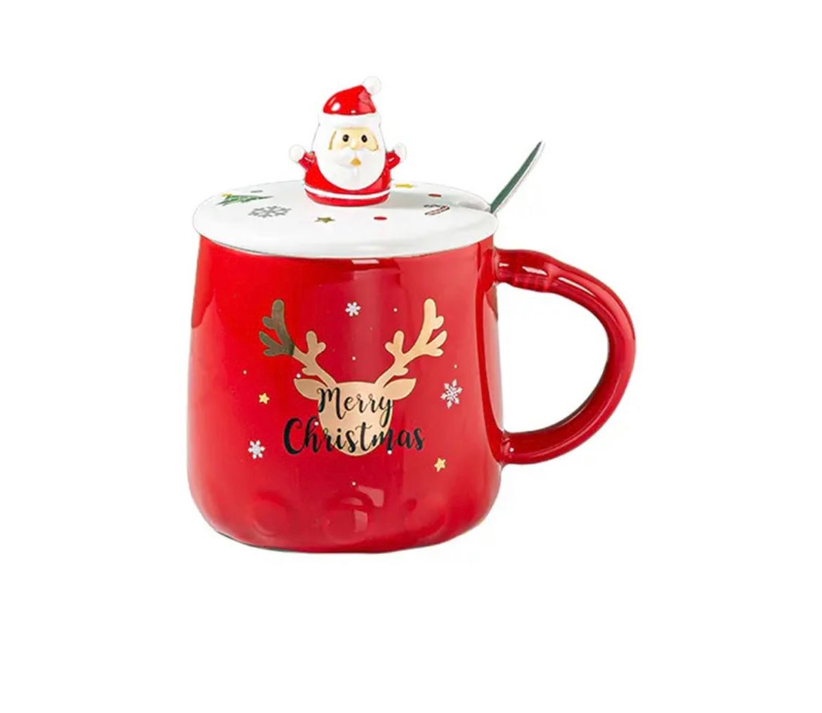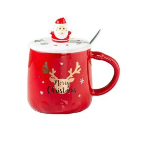 Christmas Reindeer Mug with Spoon and Santa Lid is made of high quality ceramic, beautifully designed, safe and durable, with the characteristics of heat resistance, cold resistance and easy cleaning